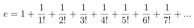 Euler's number e is widely used throughout mathematics, the physical sciences, and engineering. Its value can be written as an infinite sum; the first 8 terms of the sum are: